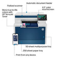 HP Color LaserJet Pro 4301fdw; 4 preinstalled HP LaserJet Toner cartridges (Black: ~2,000 pages, Introductory-Cyan, Magenta, Yellow: ~1,000 pages); In-box documentation (Reference Guide, Setup Card); warranty card (Where required). HP printer software is available at www.hp.com/support; Power cord; USB cable; fax cable (New Zealand only).