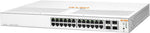 Expand your small office's network capacity by using the Instant On 1930 24-Port Gigabit Managed Switch with 10Gb SFP+ from Aruba to connect computers, network-attached storage, and other high-bandwidth devices. This rack-mountable smart managed switch features 24 Gigabit Ethernet ports with a 128 Gb/s switching capacity and a 95.23 Mpps forwarding capacity powered by an 800 MHz ARM Cortex-A9 processor, 512MB RAM, and 256MB of flash storage with a 1.5MB packet buffer. There are also four 10Gb SFP+ ports available that support fiber line uplinks and other connections that carry data across greater distances than copper lines. With its fanless design, the Instant On 1930 is built to quietly blend into almost any environment. Additionally, the switch includes a suite of security controls that allow greater control over network access, configured using the web-based application or downloadable mobile app.