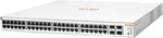 Expand your small office's network capacity by using the Instant On 1930 48-Port Gigabit PoE+ Compliant Managed Switch with 10Gb SFP+ from Aruba to connect computers, network attached storage, and other high-bandwidth devices. This rack-mountable smart managed switch features 48 PoE+ compliant Gigabit Ethernet ports with a 176 Gb/s switching capacity and a 130.95 Mpps forwarding capacity powered by an 800 MHz ARM Cortex-A9 processor, 512MB RAM, and 256MB of flash storage with a 1.5MB packet buffer. Each PoE+ port supports up to 30W of power delivery, with a total budget of 370W, to connect security cameras, VoIP phones, and other powered devices. There are also four 10Gb SFP+ ports available that support fiber line uplinks and other connections that carry data across greater distances than copper lines. With its sleek design, the Instant On 1930 is built to discreetly blend into almost any environment. Additionally, the switch includes a suite of security controls that allow greater control over network access, configured using the web-based application or downloadable mobile app.