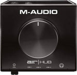 The M-Audio AIR | Hub is high-quality desktop monitor controller with a built-in 24-bit / 96 kHz DAC and an integrated 3-port USB hub, well suited for musicians and producers who need a professional monitoring solution. The rugged metal chassis utilizes a large knob to control the level to a pair of 1/4" balanced TRS connectors suitable for studio monitors. A separate, independently controlled 1/4" headphone output provides private listening. The front three USB ports allow you to connect a variety of devices to your computer including MIDI controllers, portable devices, flash drives, and more. The M-Audio AIR | Hub includes a power supply, a USB Type-C to USB Type-C cable, a USB Type-C to USB Type-A cable, and a suite of software.