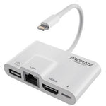 Promate 4-in-1 Multimedia Hub with Lightning Connector, 1080p 60Hz HDMI, 10/100Mbps | MediaSync-LT