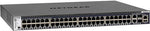 Expand your small-to-medium-size business's network capacity with the M4300-52G 50-Port 1G/10G Managed Network Switch from Netgear. This fully managed rackmount network switch includes Layer 2, 3, and 4 feature sets such as hot-swappable mixed stacking, with up to eight switches in a single logical switch, but no license requirements to support video broadcast and other high-bandwidth applications.